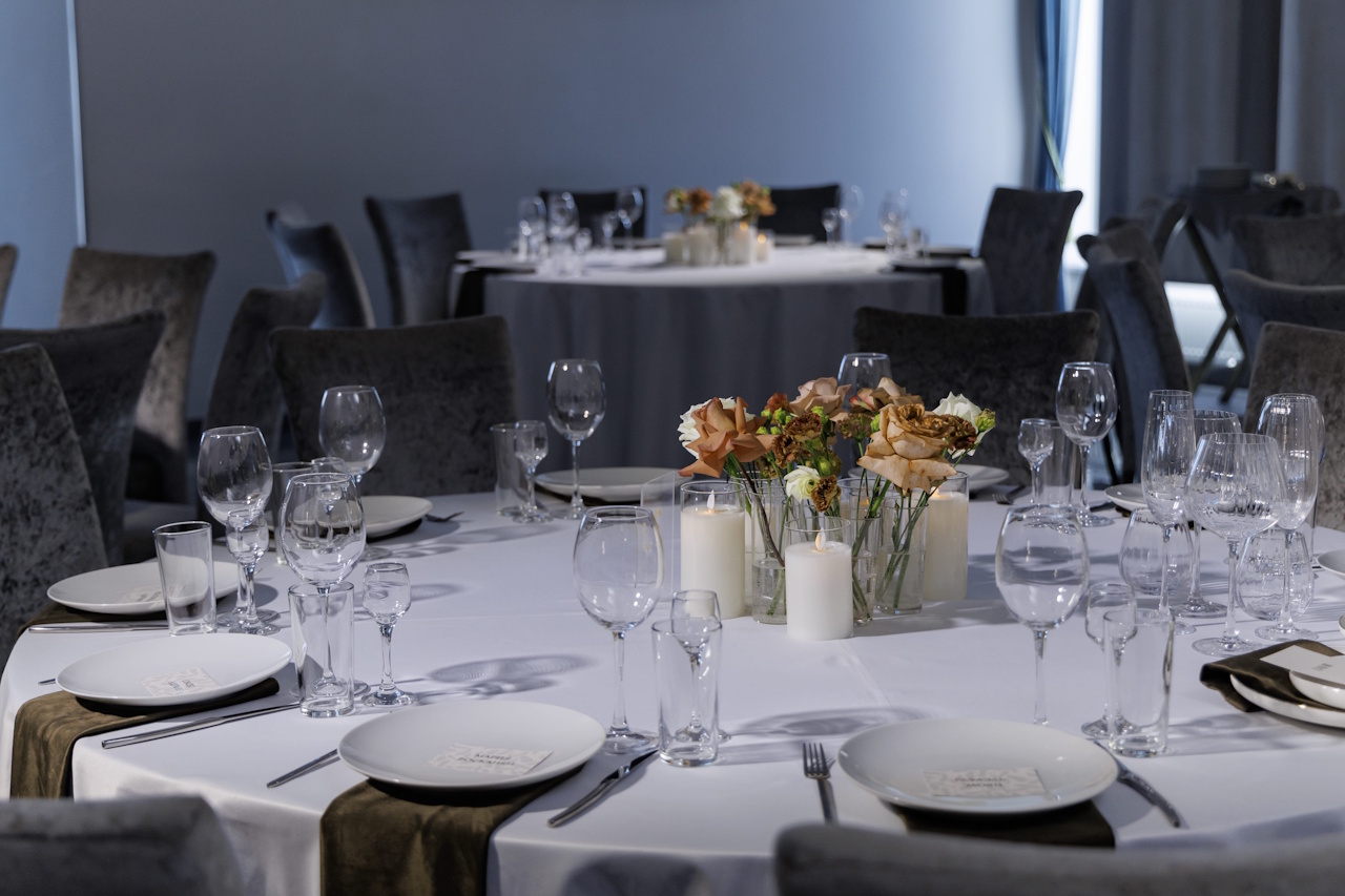 Возможен вариант банкета со своими напитками (действует пробковый сбор).